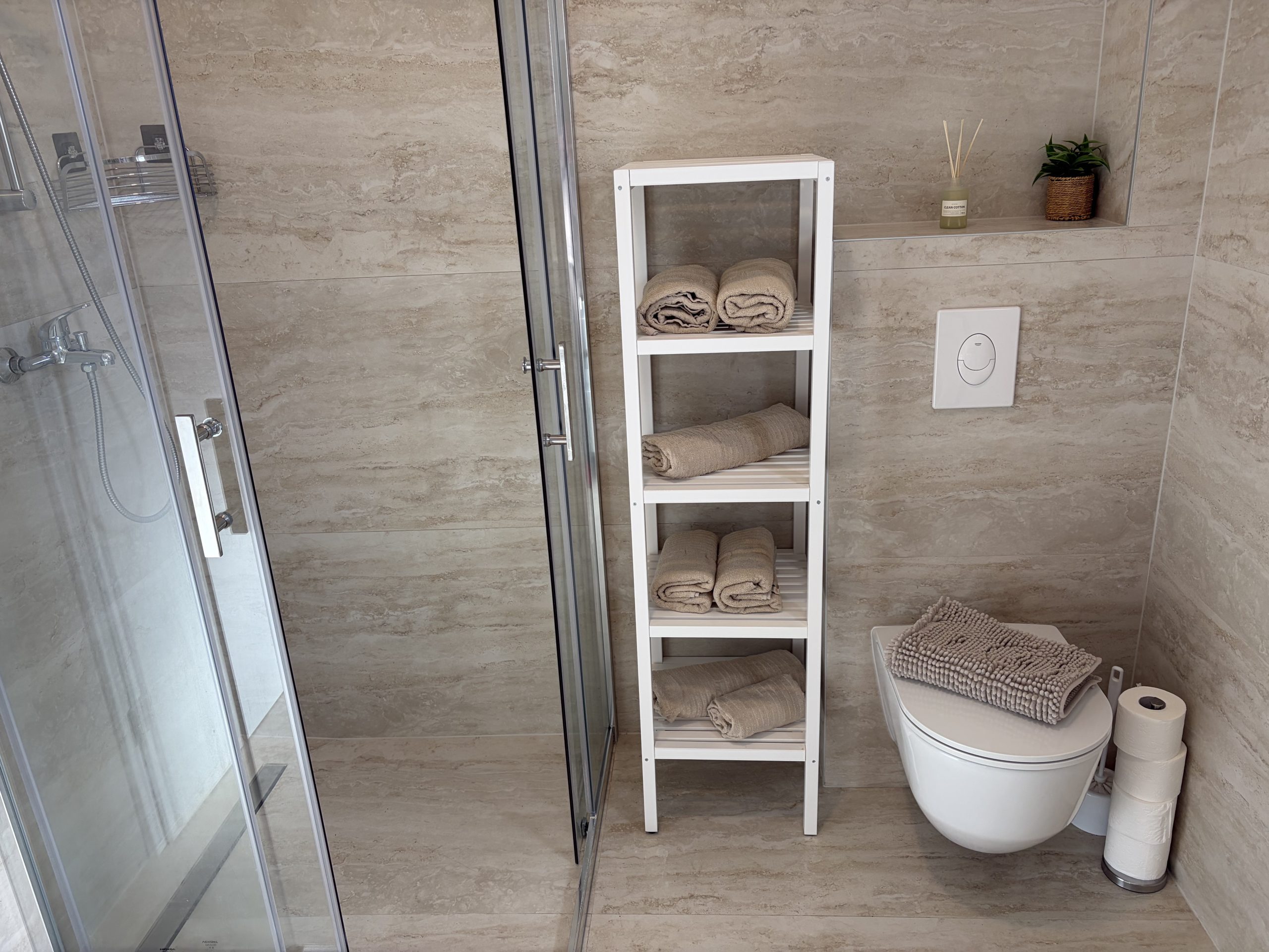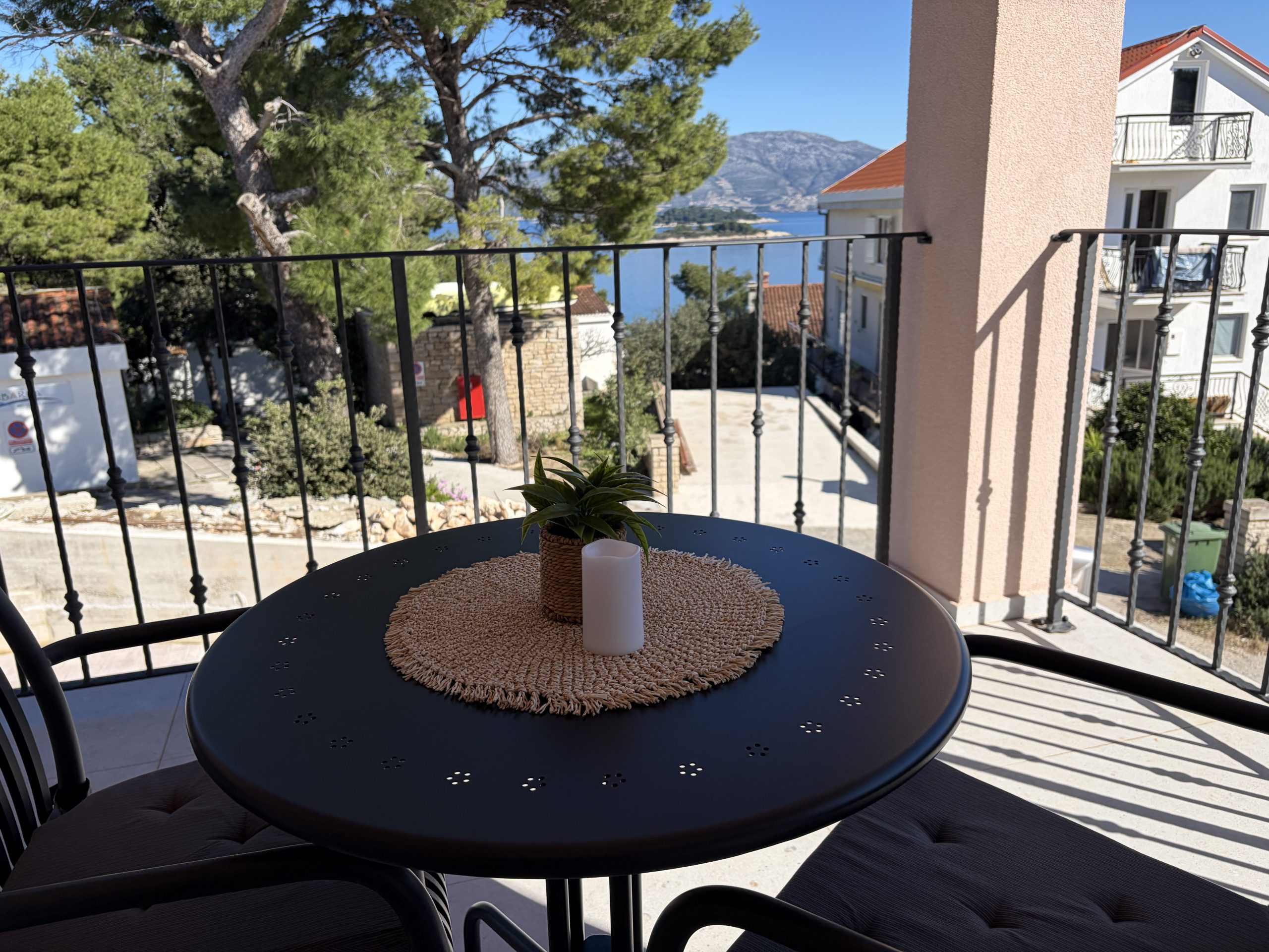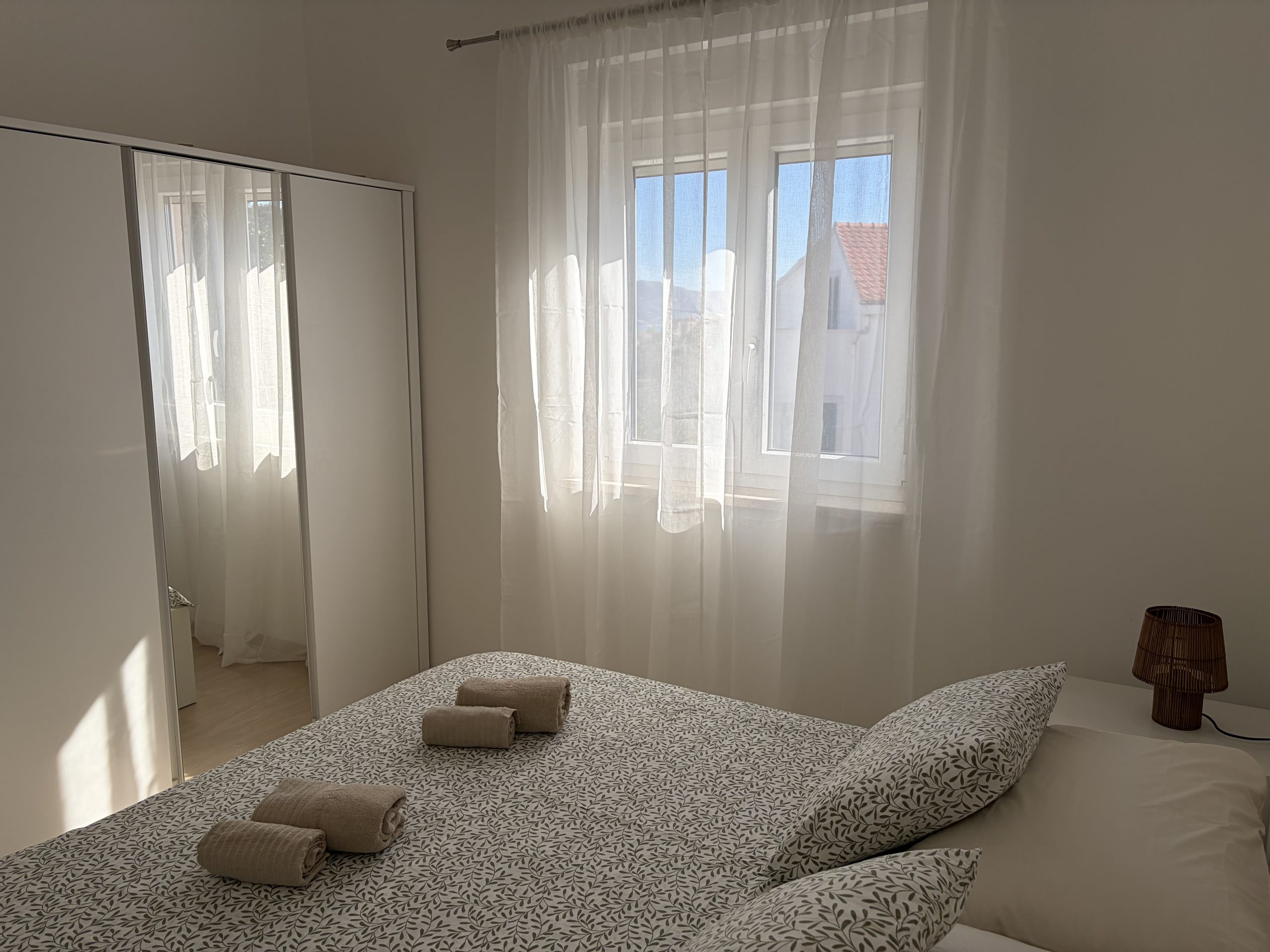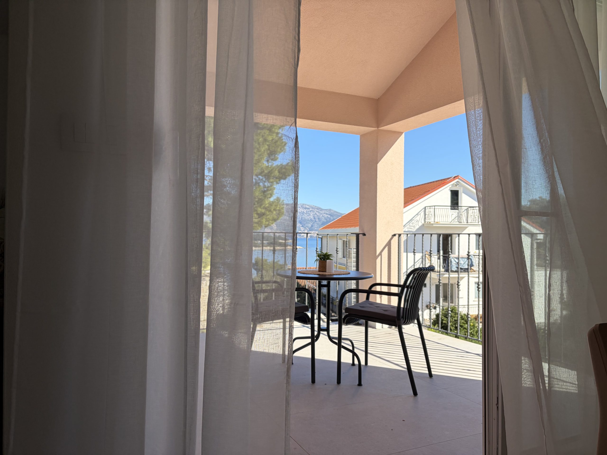 Apartments Verde consist of two completely identical apartments located in a newly built house, surrounded by olive trees and lush greenery, offering a peaceful and authentic Mediterranean setting.Each apartment features a fully equipped kitchen, dining area, and comfortable living room, as well as a bedroom, bathroom, and a private balcony with beautiful views of the greenery and the sea. The interiors are thoughtfully designed to provide comfort and a relaxing atmosphere, ideal for couples or small families.Private parking is available within the property and is free of charge for guests. The town center is just a 5-minute walk away, allowing you to enjoy both tranquility and easy access to restaurants, shops, and local attractions.